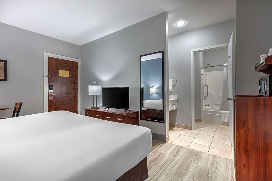 This room features a microwave, refrigerator, and coffee-making facilities.